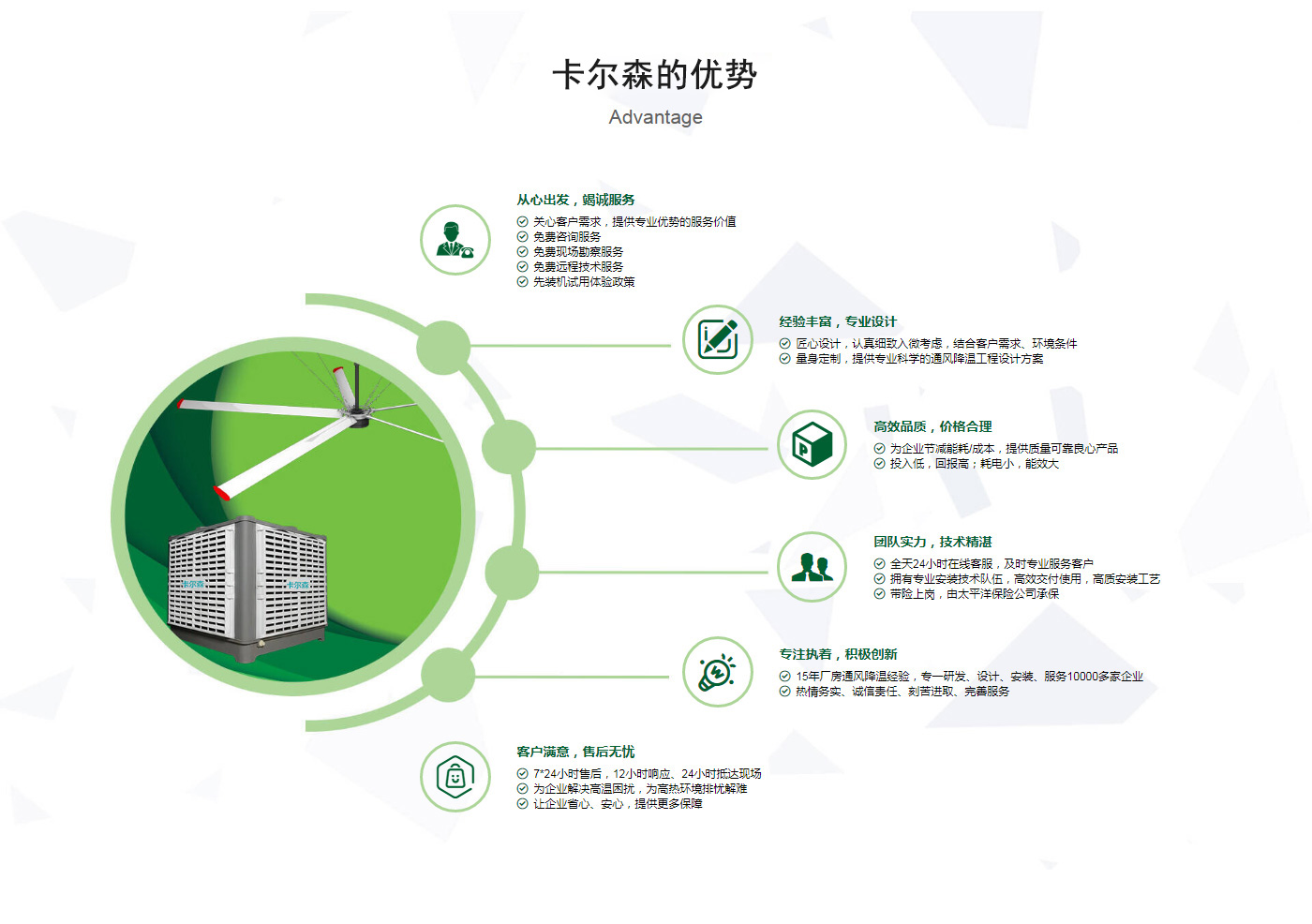 應(yīng)用范圍: 適用于高溫或有異味的車間:熱處理廠、鑄件廠、塑料廠、鋁型材廠、制鞋廠、皮件廠、電鍍廠、印染廠等各種化工廠等。 適用于勞動(dòng)密集型企業(yè):服裝廠,各類裝配車間,網(wǎng)吧等。 適用于需要降溫又需要一定濕度的場所:棉紡廠、毛紡廠、麻紡廠、織布廠、化纖廠、經(jīng)編廠、加彈廠、針織廠、絲織廠、襪廠等各類紡織廠。 適用于:倉儲(chǔ)物流領(lǐng)域、園藝溫室大棚通風(fēng)降溫、畜牧場降溫等場所。 全國服務(wù)熱線:13960350919